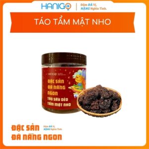 TÁO TẨM MẬT NHO là món ăn vặt thơm ngon, kết hợp giữa táo xanh Ninh Thuận chua nhẹ được sấy dẻo và vị ngọt dịu từ mật nho, tạo nên hương vị hài hòa, lạ miệng.